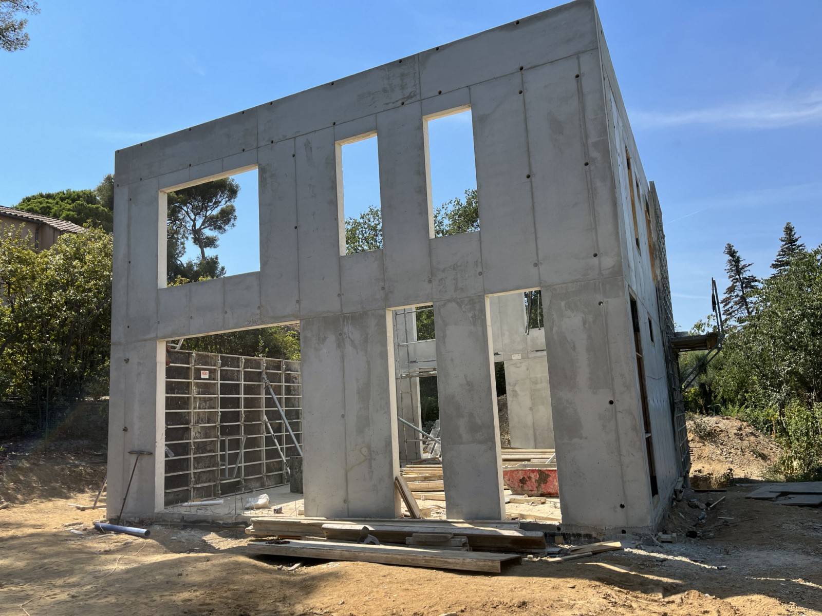 Située à Toulon, cette maison incarne l’alliance parfaite entre esthétique moderne, matériaux durables et savoir-faire technique. Le gros œuvre a été mené avec précision, de la réalisation des fondations, à l’élévation du rez-de-chaussée, la mise en place du plancher haut, puis l’élévation du R+1 et la pose du plancher haut de l’étage.
